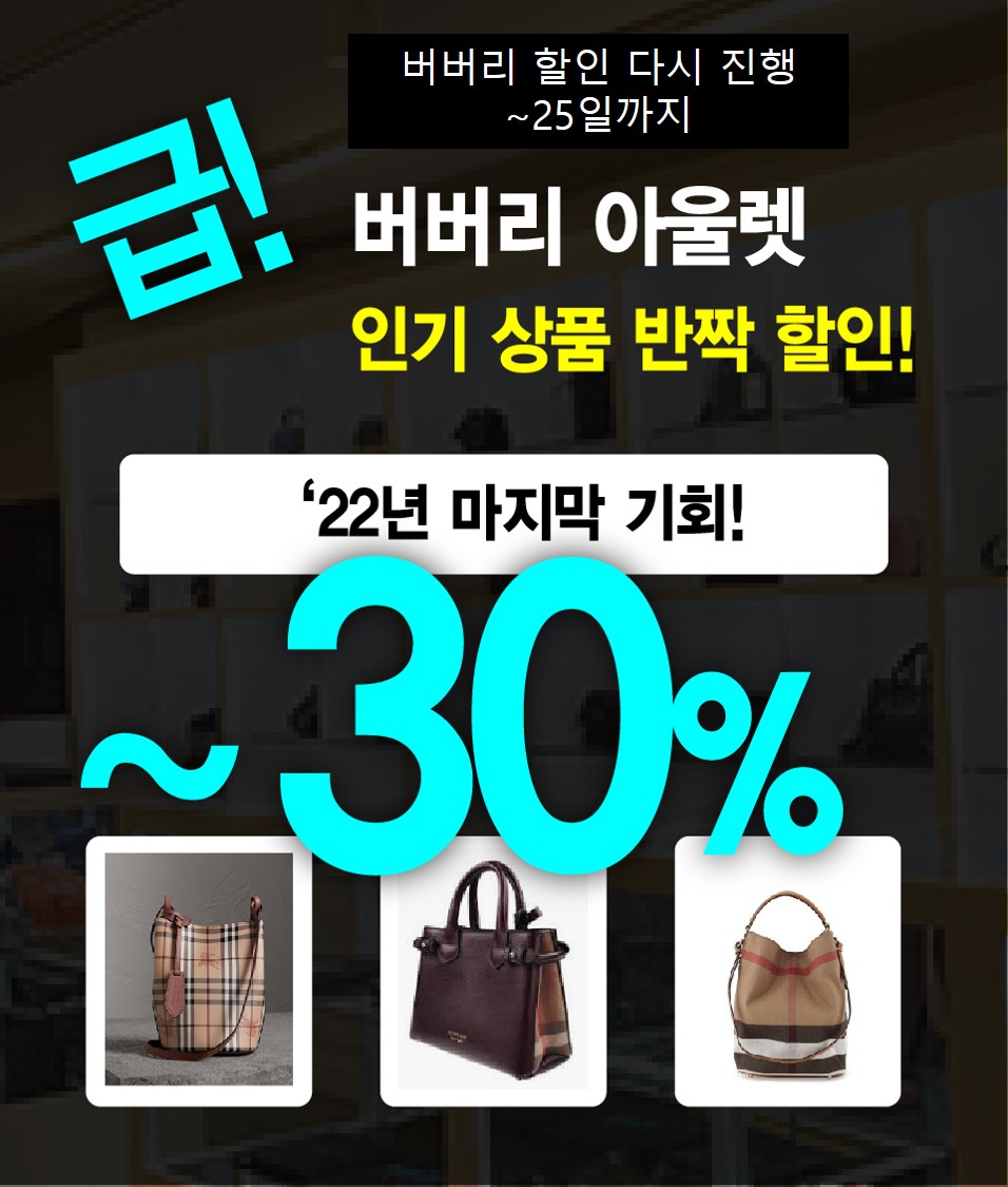 📢 20221222-1 버버리 아울렛 상품 실시간 바잉 할인 30% ◆ 마감시간: 2022/12/25 오후 1:00