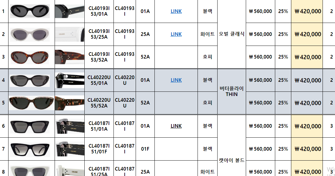 📢 셀린느 선글라스 국내도매리스트! 20230111-2◆ 마감시간: 2023/01/15 18:00◆ 상품유형: 국내스탁◆ 공급가 기준: 관부가세 및 배송비 포함◆ 인도예정일: 컨펌 후 7일내 배송◆ 오더룰1) 등급순/주문순으로 마감2) 등급별오던조건 없음